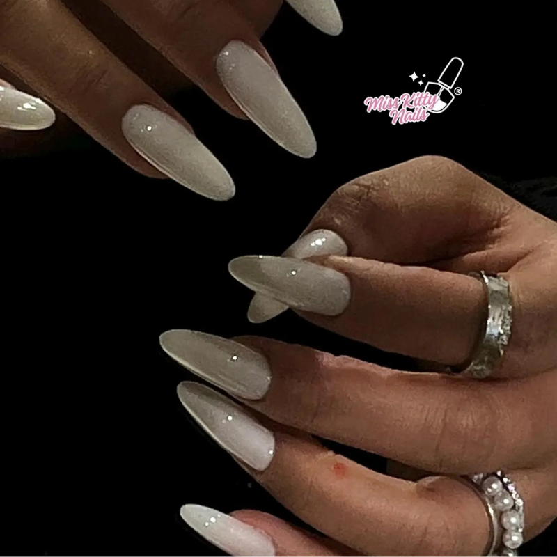 This 24-piece TheKKSet™ collection arrives in a White Shine with a Jasmine-Clean Milky Gel composite, designed in your favourite nail styles.